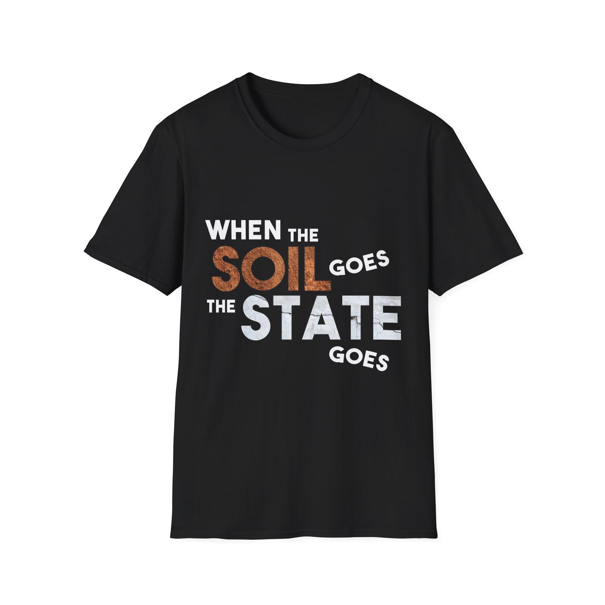 This shirt doesn’t whisper. It warns. Featuring a bold design where the word SOIL is filled with rich earth and STATE is beginning to fracture, this piece speaks to the ecological foundations of power. A call to those who know that soil degradation isn’t just an environmental issue --> it’s a warning sign for civilizational collapse.